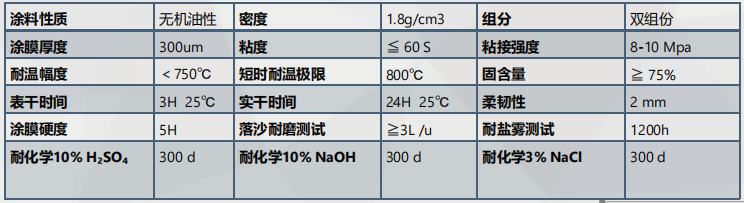 (2) 能在400℃溫度狀況下長(zhǎng)效防腐,且考慮耐火磚局部隔熱效果的衰減造成非正常局部超溫,涂料的耐溫性應(yīng)不低于600℃;
